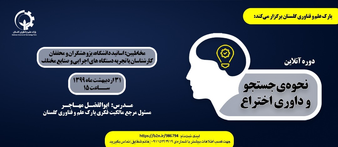 پارک علم و فناوری گلستان اقدام به برگزاری دوره مجازی " نحوه جستوجو و داوری اختراع " در روز پایانی ماهجاری میکند.