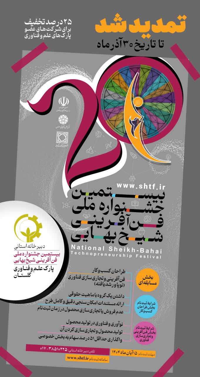 مهلت ثبتنام در جشنواره شيخ بهايي تا پایان آذرماه تمدید شد/ تخفیف 25 درصدی ویژه فناوران گلستانی
